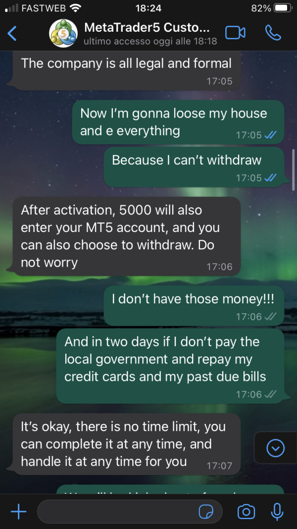 involved in the SCAM by a woman who acts as a big trader on MT5 using Sich Capital. Her “name” was Wáng Lù Qiàn, phone +85246756583. She admitted the SCAM at the end because she felt guilty for putting an elder unhealthy mother and her unhealthy son on a street without a money left and loosing their house.The broker acts normally at first - allowing immediate withdraw at any time - when the funds were low. We put everything we had (over 20k$) and reached 33k$. They asked 5k$ to withdraw then.