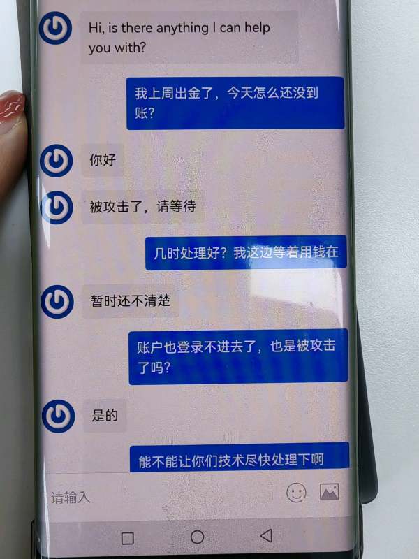 说是黑客攻击了,周五提的,还没到账,账户偶尔能登录上,这两天有人出来了吗?