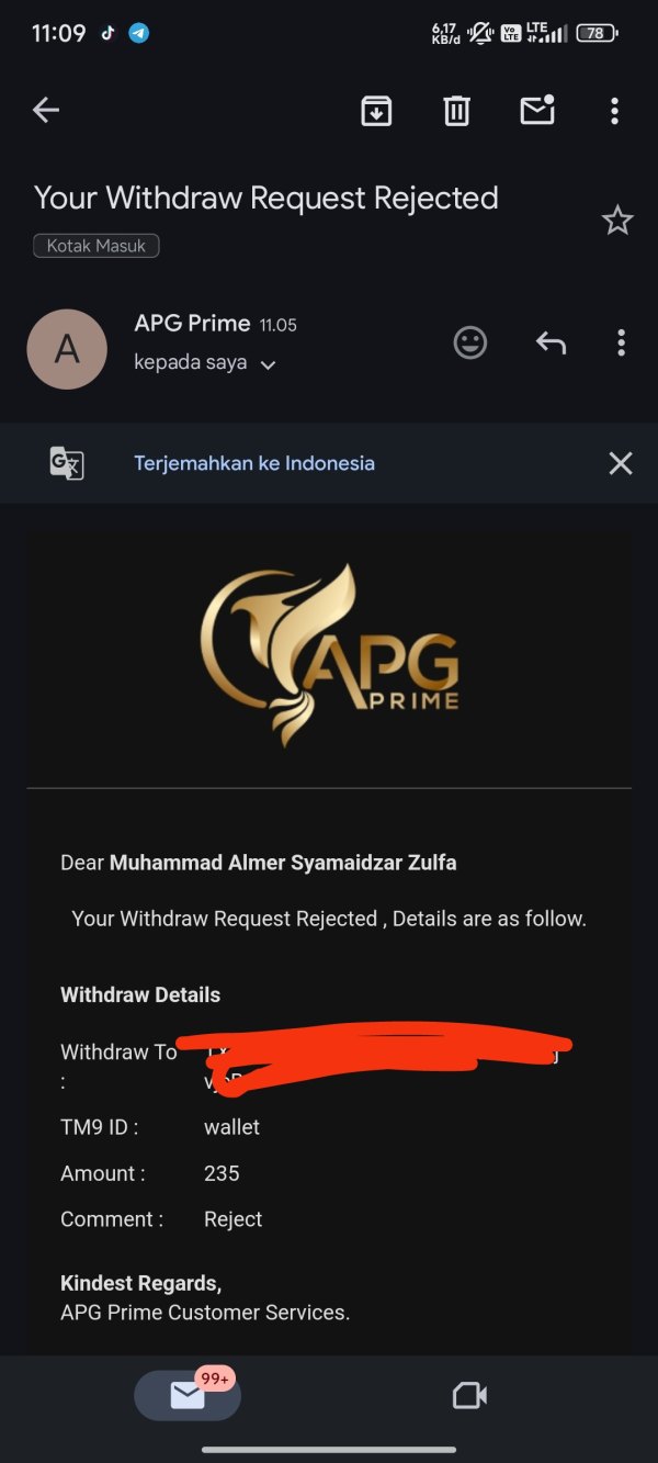 withdrawal ditolak setelah menunggu selama ±2 minggu, kemudian akun diban secara tiba², tidak dapat log in kembali ke akun