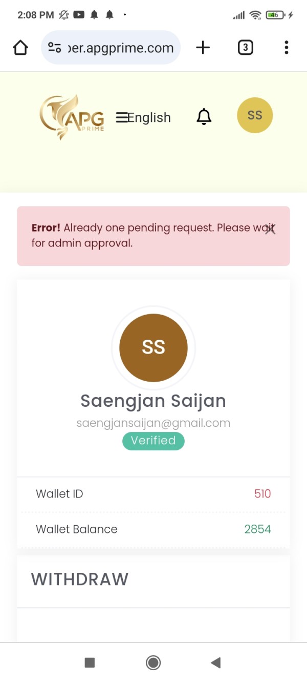 มีการถอนเงินไว้ 500$ นานมากแล้ว APG prime ยังไม่ดำเนินการ และมีจำนวนเงินใน wallet อีกจำนวนหนึ่งสำหรับการรอถอน ซัพอร์ตไทย ติดต่อไม่ได้ ซัพพอร์ต ต่างประเทศติดต่อไม่ได้ โบรกก็ปิดปรับปรุง