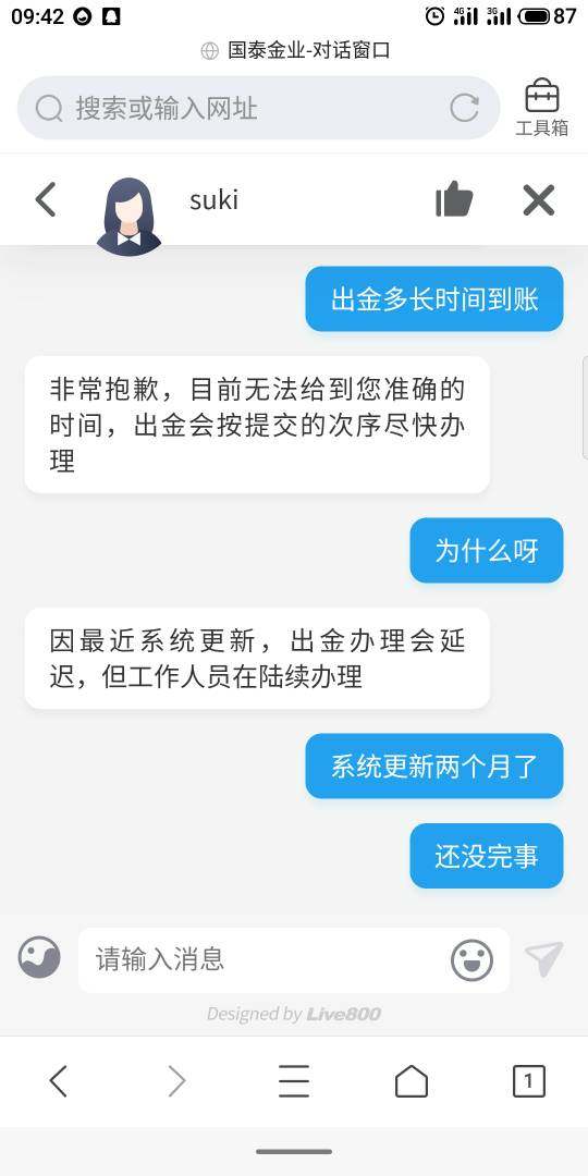 申请出金,之前都是两个小时到账,现在以系统升级为由不给出。看看情况,准备报警。