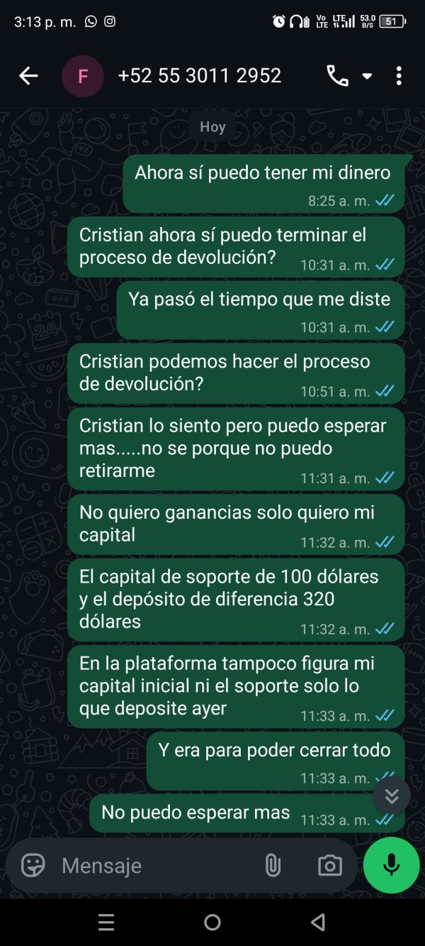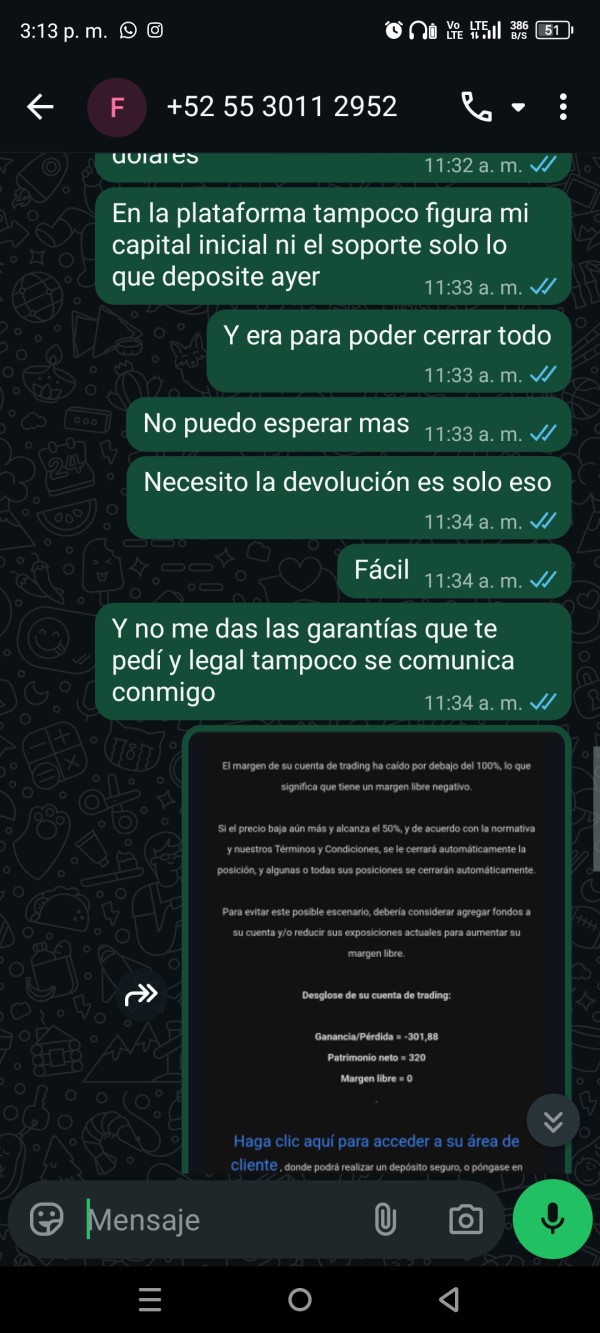 buenas tardes vengo a denunciar a Javier Martinez gerente de operaciones de EzInvest, la llamada me lo hizo mediante WhatsApp y lo que indica es que debo tener 220 dólares para culminar el proceso de devolución de capital, la pregunta es para que se necesita 220 dólares de fondos en tu cuenta bancaria o de binance para vincular? y poder realizar tu retiro? no tiene sentido, para que pedir más dinero y solo para vincular? y no te quieren decir para que son los 220 dólares, solo quiero recuperar mi dinero y siguen abriendo operaciones aún cuando yo había solicitado retirarme. si no tengo fondos de 220 no puedo recuperar o retirar esas son sus condiciones
