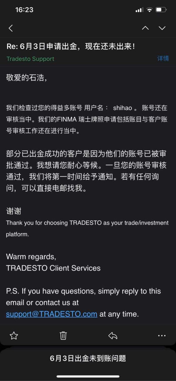 四个月了一直无法出金 一直说审核还说自己有瑞士牌照