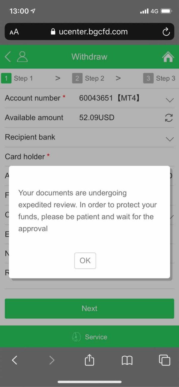 Hiện tại tôi có đăng kí tài khoản tại sàn .khi rút tiền sàn có yêu cầu xác minh tài liệu . Tôi có cung cấp đủ tài liệu liên quan nhưng ko thấy phê duyệt . Mở chế độ rút nhiều lần chỉ thấy 1 bảng thông báo này và ko thấy có phản hồi gì thêm
