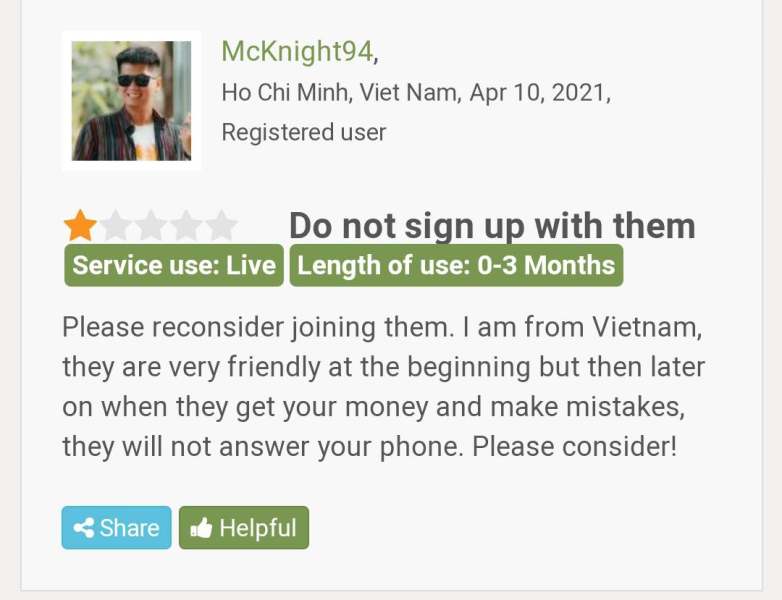 펀드를 거래하고 숙성시키는 사기 회사입니다. 그들과 함께 일하지 마십시오. 이런 사람들은 감옥에 있어야 합니다. 사기꾼 조심해 내 모든 자금을 잃었습니다. 그들의 광고를 믿지 마십시오.