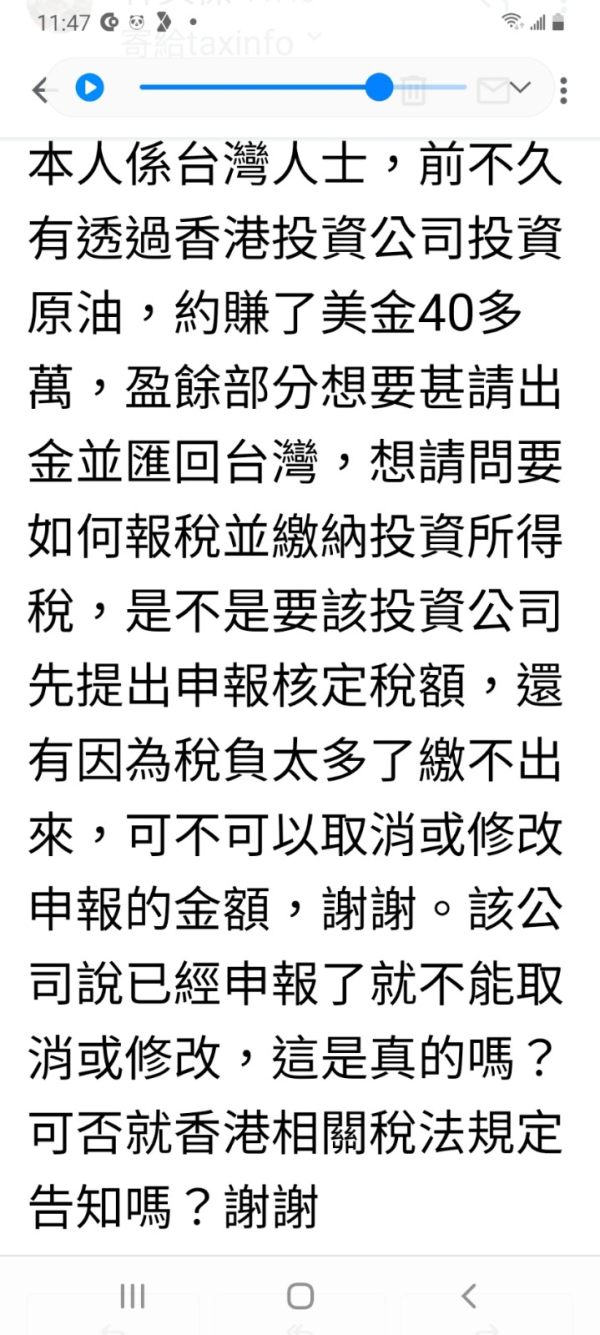 https://www.ird.gov.hk/chi/cu.htm 上面是中國香港稅務局的網站。 無ˊ法查德【鑫普國際】的登記。 且經營詢問。 香港投資期貨,之類的投資,是不用扣稅金的。 最誇張的是,繳稅金,竟然不能從本金扣款。這太誇張了。明顯是詐騙。