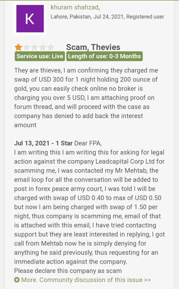 This broker charged a client $1.5 per day in exchange for gold but before client went into business with them, they said they would charge maximum $0.5 per day. Bunch of liars.