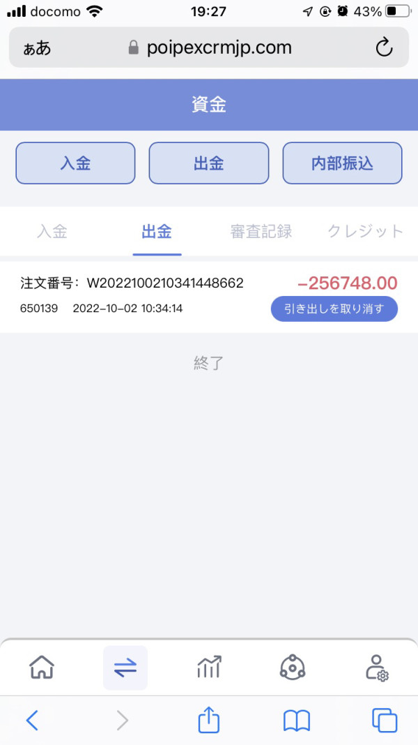 10月2日から出金出来ず。