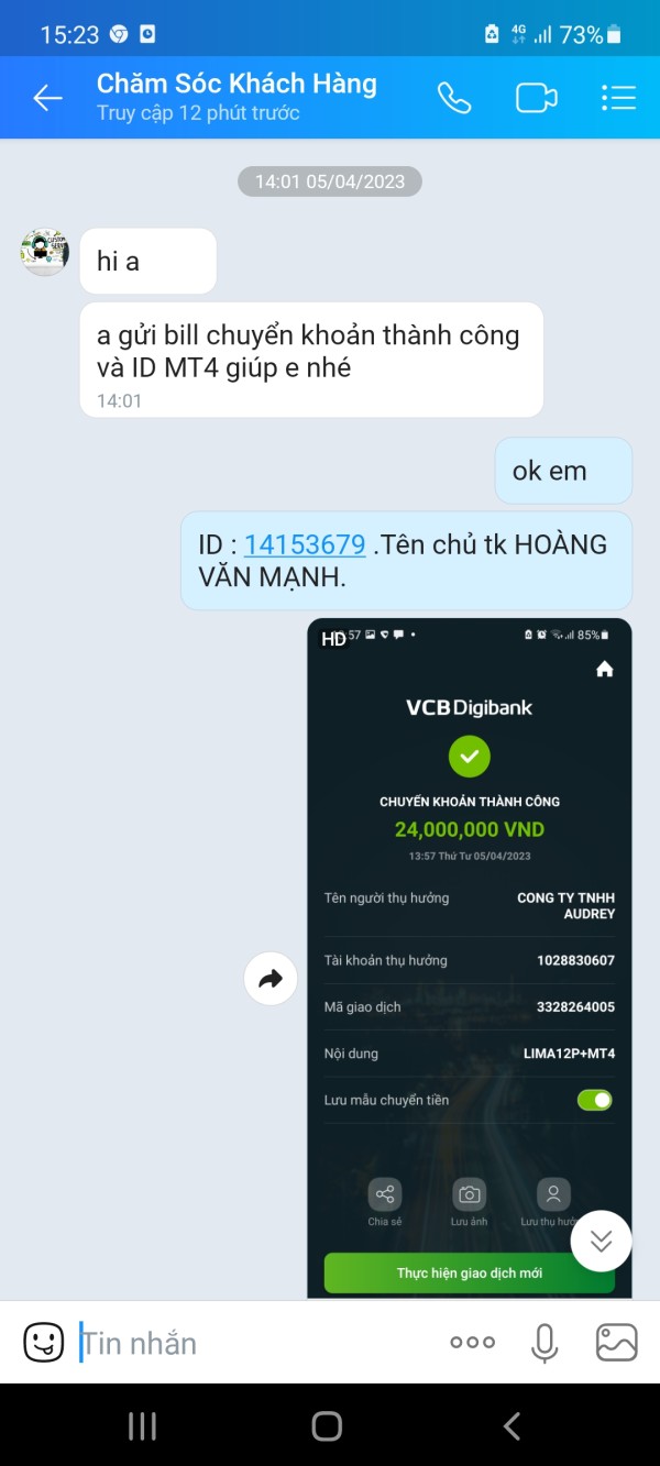 chuyển khoản xong nhân viên báo lại là tiền chuyển sang bên ngân hàng bị khóa ra ngân hàng hỏi thì bên ngân hàng báo vẫn hoạt động bình thường có gọi lại thì bên nhân viên gkfx nói ra ngân hàng để làm thủ tục lấy lại nhưng chờ mãi bên gkfx ko chịu xác nhận hoàn trả. sau đó còn chủ động đóng tk MT4 của mình mà báo chuyển qua Dex invening......Nói chung rút tiền hay nạp tiền đều khó ( có bằng chứng)