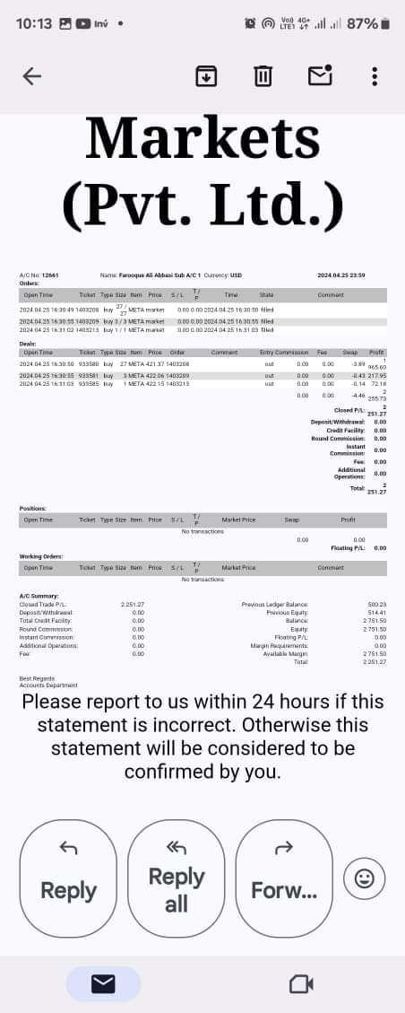 Subject: Review of Belleofx scammer Broker - my Mt5 Account No.12661 Dear Sir/Madam, I am writing to provide my review of the services provided by Belleofx scammer Broker. My name is Farooq Ali Abbasi, and I opened an account with Belleofx with the MT5 A/C No. . I2661 would like to bring to your attention an incident that has occurred with my account, which has led me to believe that Belleofx is a fraudulent broker. On 22th April, I deposited 504 USD into my account and opened a sell trade of 31 shares of US shares META Facebook. I made a profit of 2251 .96USD, and when I requested to withdraw my profits, so Belleofx scammer company canceled all of my profits and emailed me that I had done fraudulent trading. I fail to understand how trading based on speculation or news can be considered fraudulent. I made a profit, and when I asked for it, they refused to give it to me. If I make money, they refuse to give it to me, but if I lose money in a trade, they do not seem to care or ask. They offered me to return only my initial deposit. I would like to warn all retail traders to be cautious when trading with Belleofx scammer company. It appears that they run standalone servers that are not connected to exchanges. I am warning all readers be ware of this fraudulent broker. I am attentioning CEO of belleofx that your broker is doing scam with me, kindly return my profit, i didn't do any wrong, just do a normal trade in US share provided by your broker. If i loss with same strategy then will company compensate my loss ? I request all retail traders to withdraw their money from Belleofx scammer company sooner rather than later because, even if you make a profit, you will eventually lose your hard-earned money. I would appreciate your help in spreading the news about this incident so that others do not lose their money to this scammer broker. I have attached screenshots, proofs, videos, and screens to this email. I will be meeting with my lawyer this week to take action a