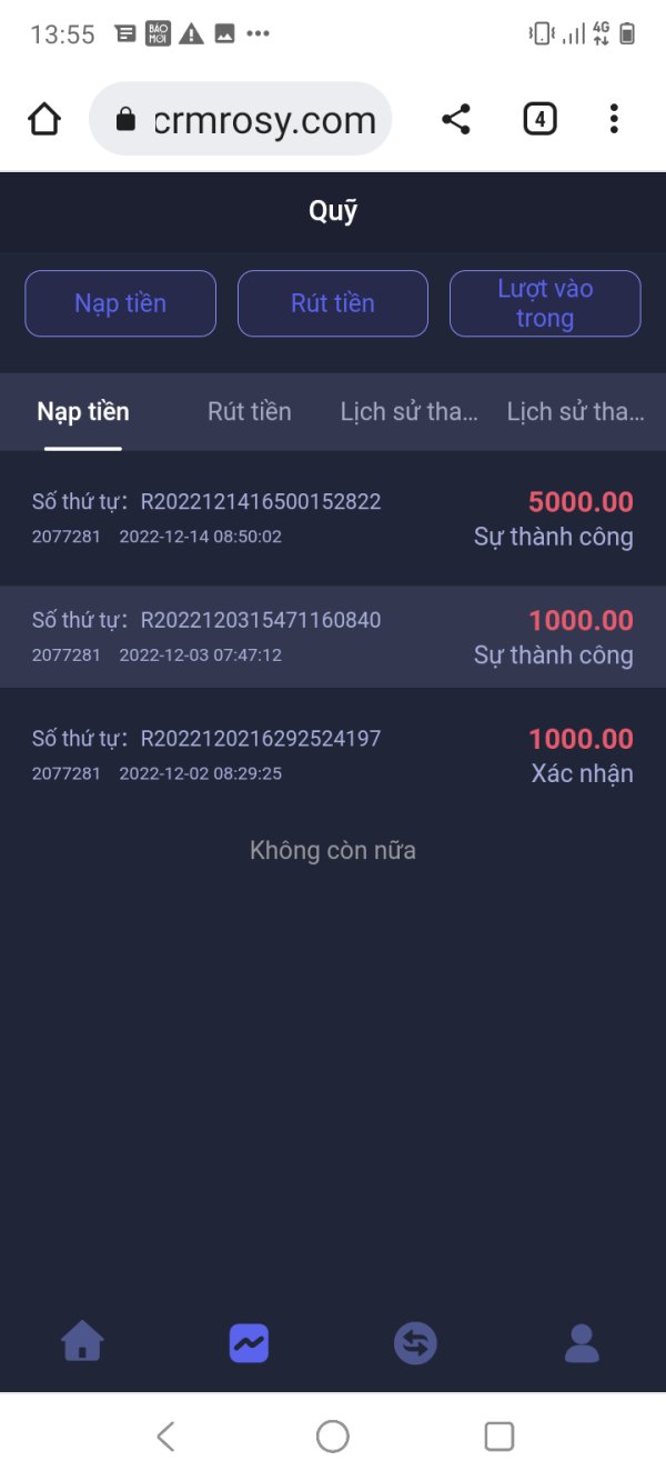 sàn này đã làm thất thoát vốn đầu tư ban đâu của tôi từ tháng 12/2022 đến nay; không bồi thương cho tôi; tôi đã trình bài nhiều lân (38 lần); nhưng chua có ai giúp đở; mong các cơ quan ban ngành xem xét giúp dùm tôi ( vốn đầu tư ban đâu của tôi là 6000$)