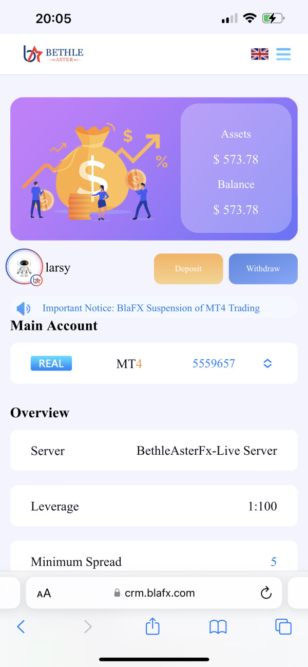 после выкупа компании блаф икс ввелись новые правила о которых пользователи узнали исключительно написав в поддержку: Users are subject to a 27% capital gains tax. After paying capital gains tax, users can withdraw all their funds to protect your rights. при этом также было указано что вывод будет работать на платформе 25 числа: From August 22, 2023 to August 25, 2023, MT4 trading will be suspended (you can still perform other operations except MT4 trading). During this period, we will carry out necessary procedures such as capital verification and declaration to ensure the smooth progress of transformation and restructuring. но с наступлением 25 числа вывод средств не стал возможен, все также в компании блафх нет возможности вывести средства на свои ресурсы. прилагаю фотографию баланса и ввода средств.