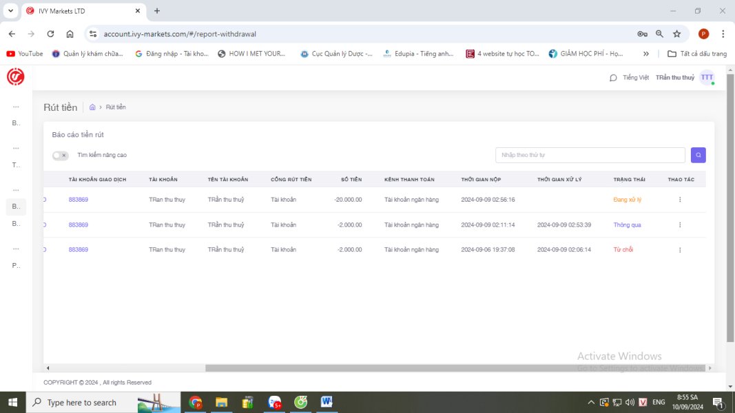 Ngày 18/9/2024 tôi giao dịch sàn Ivy market và bị sàn xóa tài khoản mt5 và áp nạp rút, chiếm đoạt 18.400usd trong tài khoản tôi ID 883869; giờ tôi không thể đăng nhập được vào mt5 và áp nạp rút