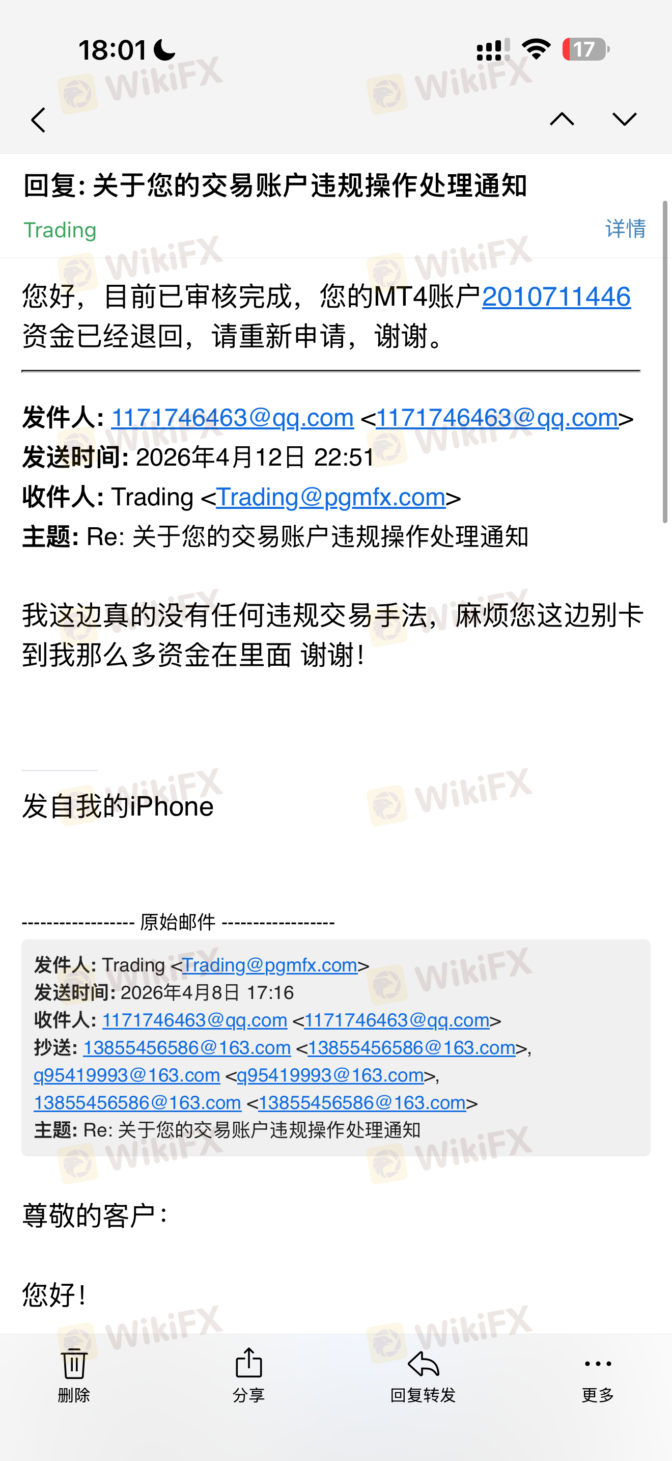 但是我这个帐户属于代理线,里面的资金是反佣,我自己的本金都已经输完了,而且我也没有什么违规交易,我并没有盈利平台的利润