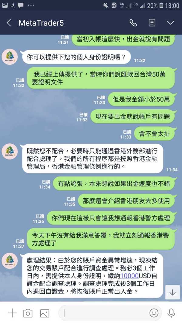 不會出金,還恐嚇要求匯款自證金,否則有危險