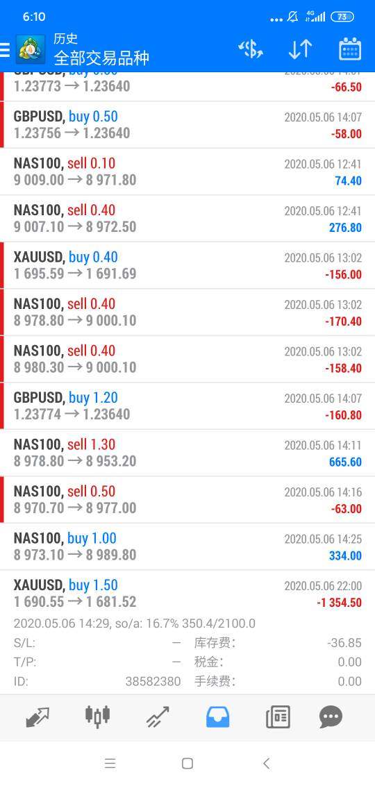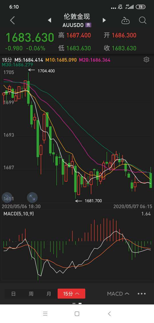 2020年5月7日鑫圣投资黄金开盘价1681.5,其他平台最少也有1683.5,它直接刷了新低,别的都没有,我的多单在最低价被平,被平时保证金16.7%,只要不低于1682,我就不会爆仓。
