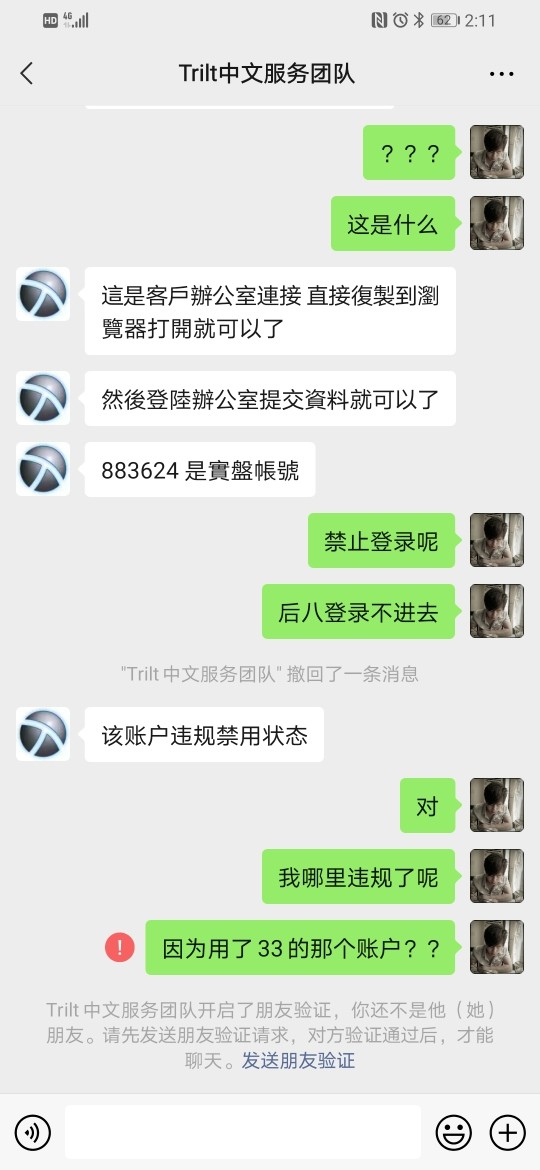 拓利无缘无故的就把我拉黑了,没有解释什么,这就是拓利的服务态度 ,就应为我用了他们平台赠送33美金的账户试了下吗?