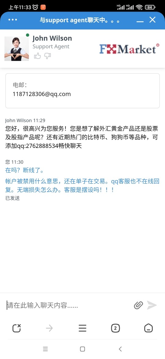 尚有订单在的帐户无故被禁用且行情突然断网,客服及qq显示已离开不回复。