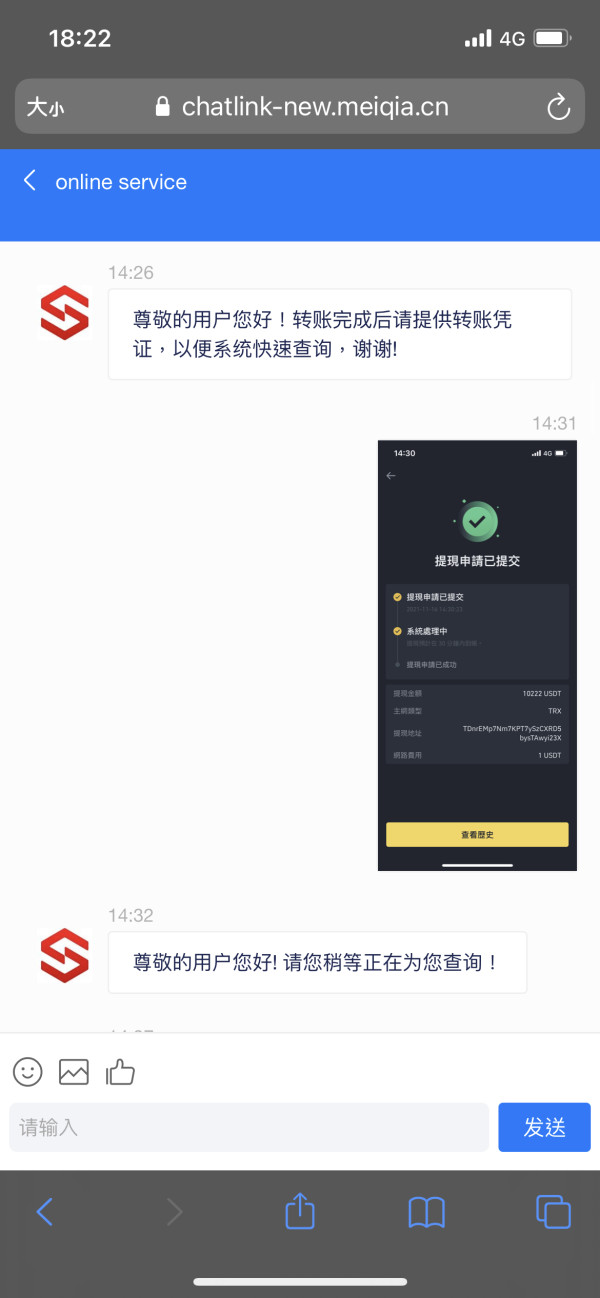 ㄧ開始也是朋友介紹這平台.也是朋友帶著我做,然後要全部提現後被告知要繳20%稅金.還不能從裡面扣!繳完稅金說正在排隊出金.後面詢問出金狀況.又被要求繳保證金!ㄧ直在拖!繳下去沒完沒了
