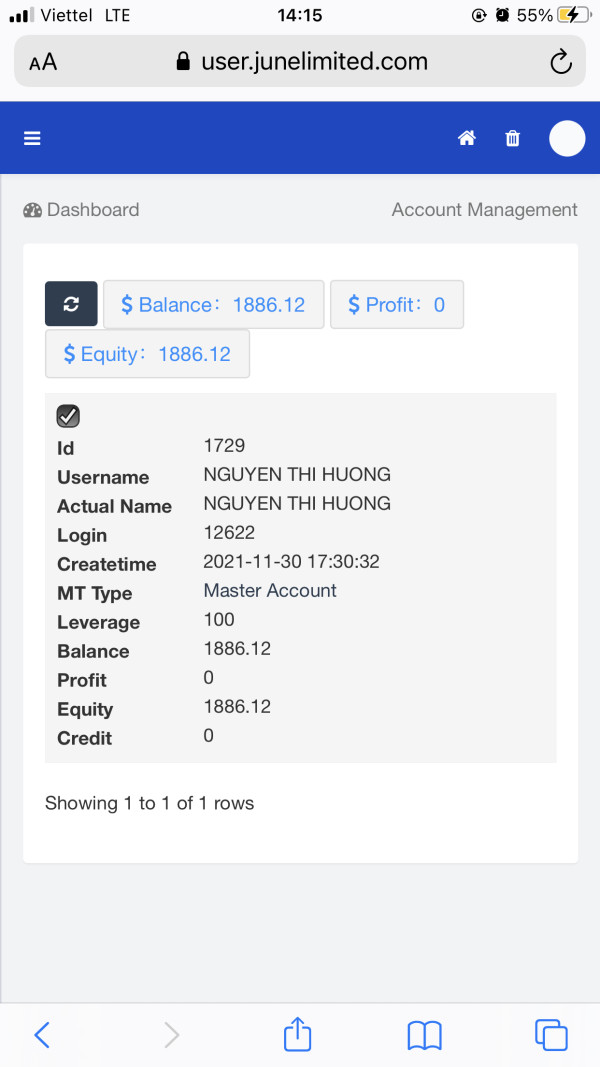 I had deposited 1000usdt to junebows , junelimited.com and trade on MT5. But i unable withdraw the money. This is the first time I invest but it scam, Please help me to get back my money, please help me. My MT5 account is 12622 And I attratted the picture as bellow Please help me. 1000 usdt for me is very a big amount. Thank you so much