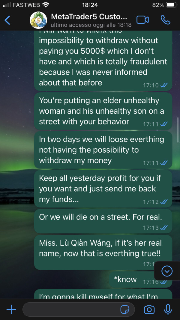 Brought in Sich Capital by her partner in criminal “Wang Lù Qiàn”(she admitted the SCAM)+85246757583. She performed as a big trader using their customer service+447752671804 and +447513302590.It worked flawlessly untill my elder mum and I had very low funds to trade, close to the minimum or so ‘cause we were scammed few days before by a fake platform loosing almost anything.We sold everything to try to save the house and we reach33k$ on the account.They asked 5K$ to withdraw then!But it’s a SCAM