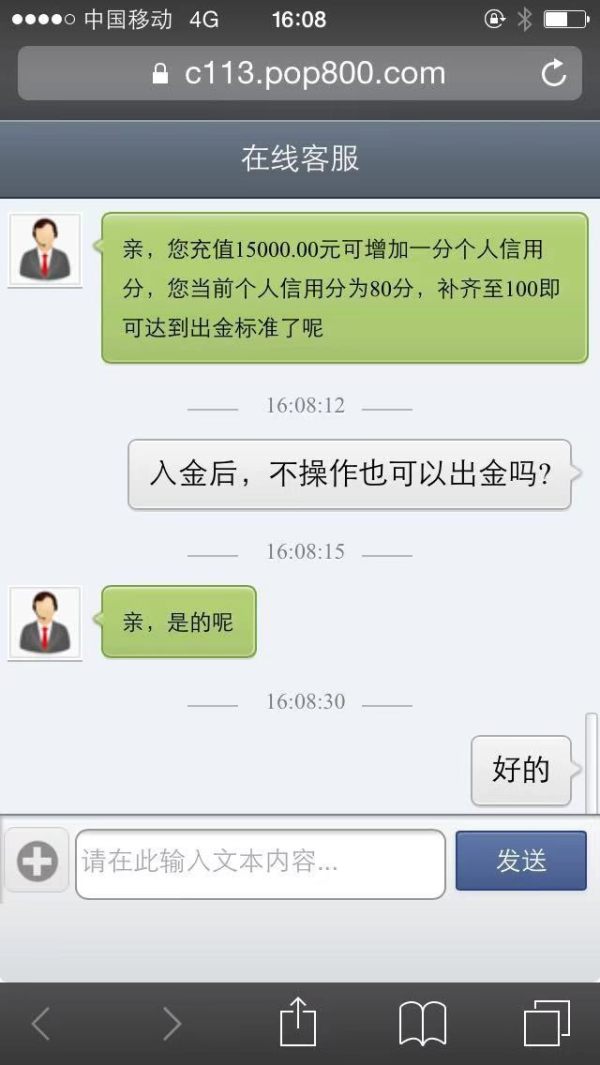出金的时候要求再次填写个人信息,然后银行卡号填错,客服说影响到个人信用分,然后就不给出金了,个人信用分80分还需要补20分,入金1.5w人民币等于1分,逼迫在月底前入金30w,否则资金就一直冻结,并威胁到如果月底不补齐信用分账户将被取消,