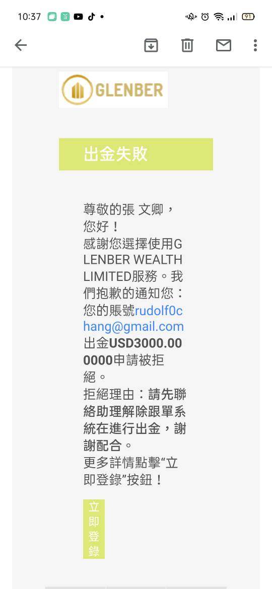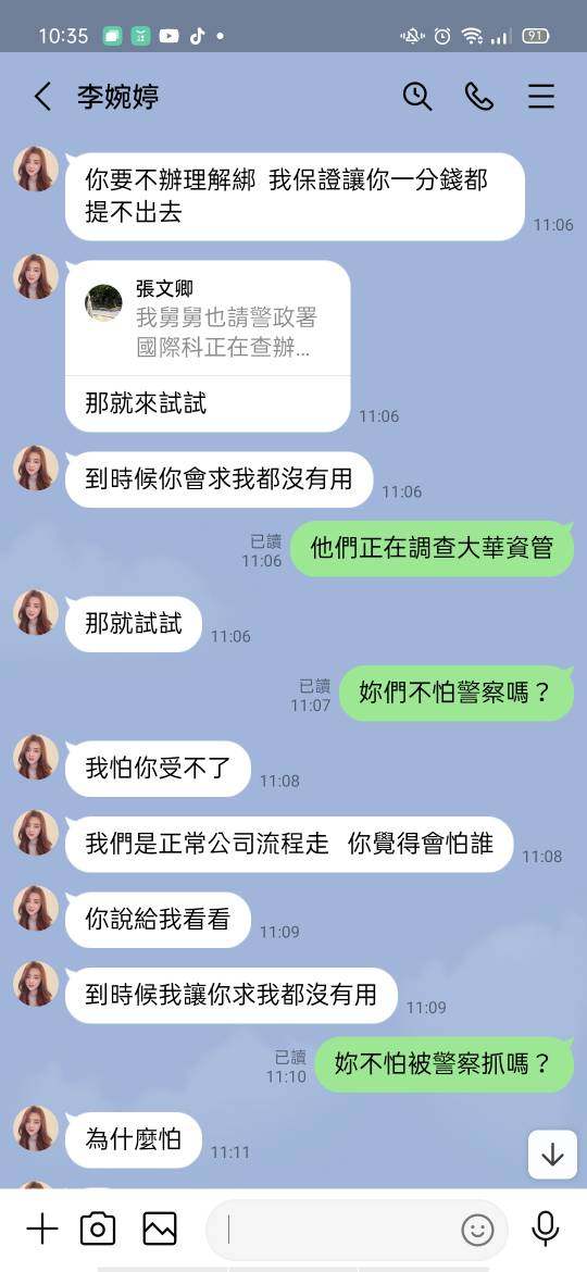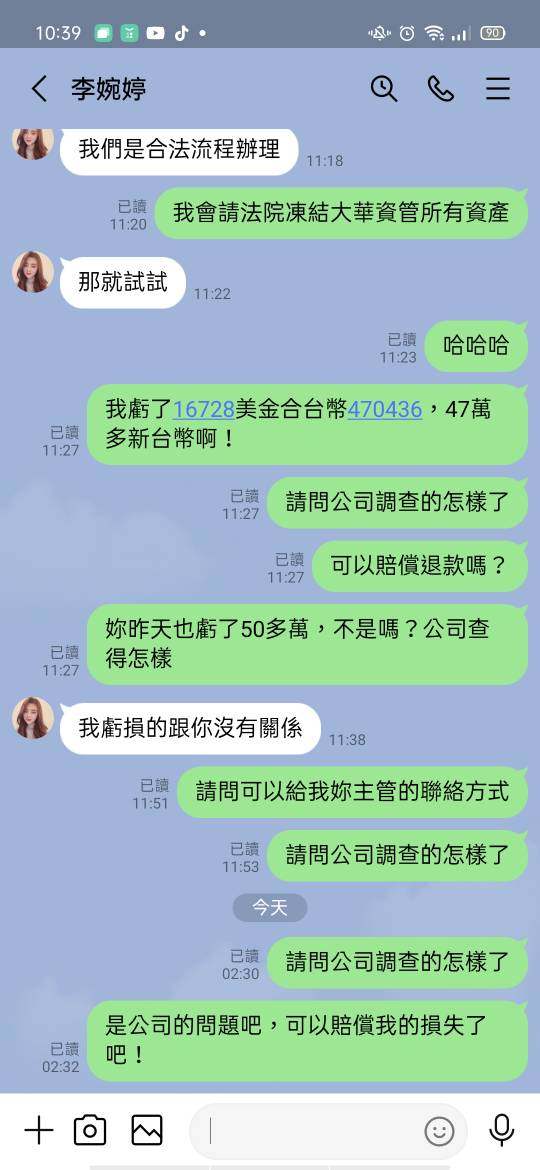於網路看到投資訊息後加入對方LINE,客服說一致性交易獲利百分百,被慫恿至他們網站投資,歹徒誆稱保證獲利,穩賺不賠。遂依歹徒指示陸續匯款5萬2千美金,惟要提領獲利出金時卻無法出金,驚覺受騙。