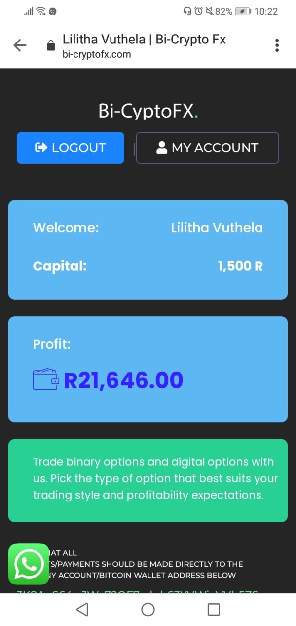 I made an investment of R1500 to Bi-cryptofx and they said the profit is 21000... Then when it was time to withdraw they wanted a withdrawal fee whereas they said nothing when approaching me, they said nothing about withdrawal fee.. But later on they wanted it before I get the profit... They took my R7000 at first then later on they wanted R1500 for insurance claiming its for cyber loss . So now they want another R2000 claiming that it's a signal fee... Please assist me