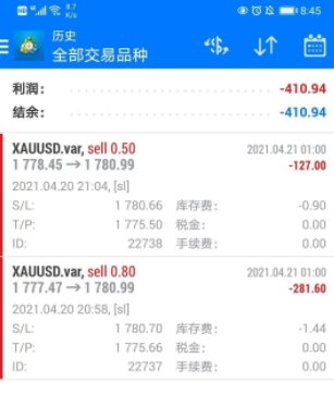 我持有1778点位的空单,浮盈一百多美金,结果在未进行任何操作的情况下,单子被莫名止损。最高点位在1778.66,而我设置的止损位是1780.7。本身盈利的单子却显示的是亏损的数额,让我大为不解。