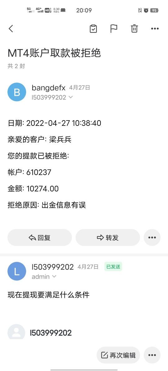3月底就不能出金了,出金显示失败 联系领导人也联系不到 610214和610237 一直是出金失败,说什么会慢慢出金,根本联系不到人