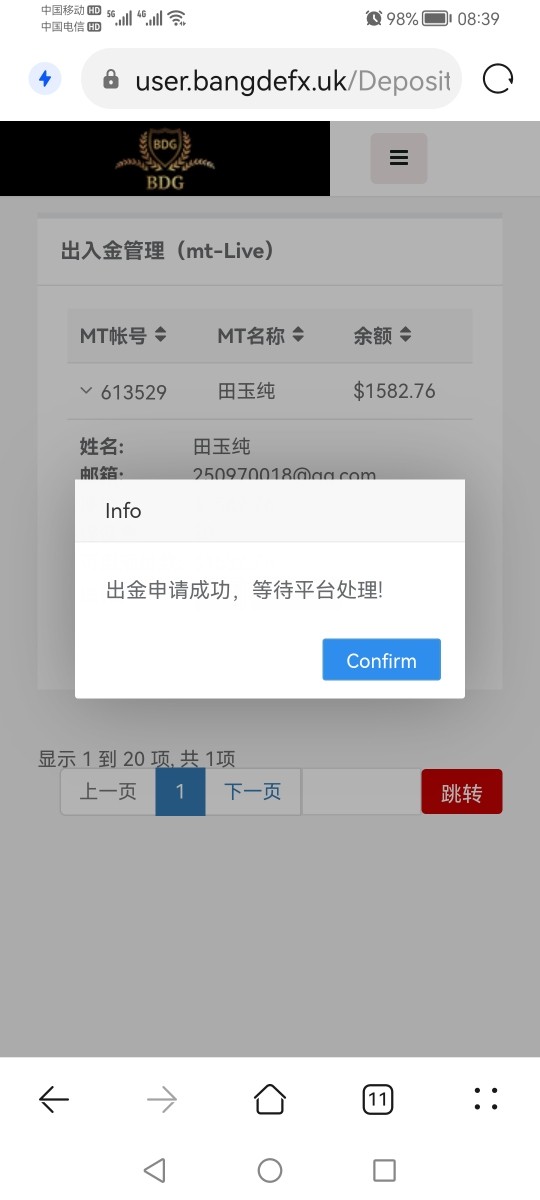 4月30日出金,至今资金没有到账,多人反映无法出金问题,目前没有人出面负责