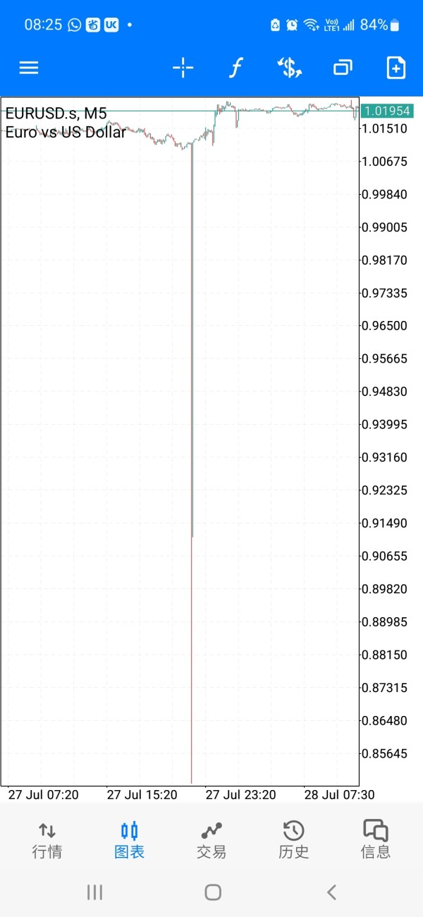 我在入金8000後兩天都沒操作過一次,想提款客服不給,說要交易手數五手還有5分鐘才能提款,那麼我就買了eurusd,0.5,一買就跌不過也 就20美金,十分鐘後一下跌到0.848。 幫我直接爆倉,20年來,根本沒有到過0.848,為什麼一下子下跌,但當天根本沒到過跌到0.084。 這黑平臺是不想我取金操作了