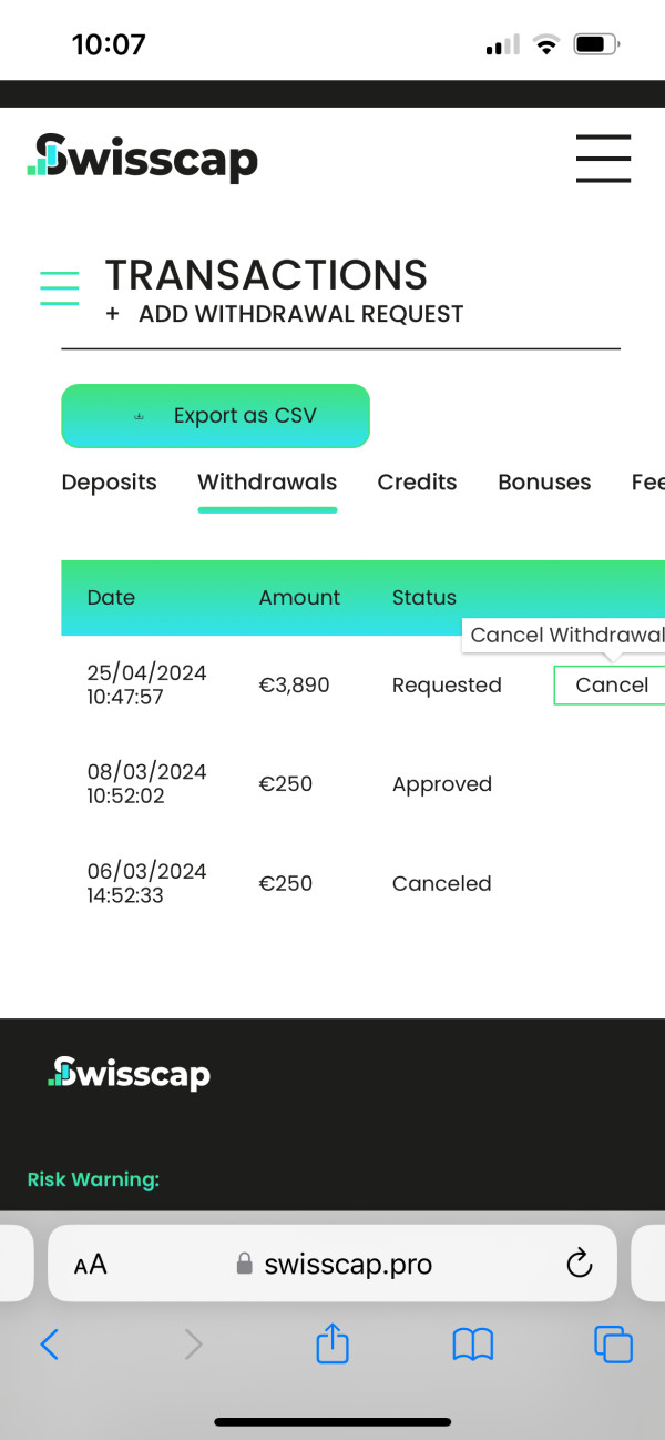 boa tarde, fiz um investimento na swisscap através de um gestor financeiro, agora ele disse que era a altura de fazer o saque do investimento (25 abril) e tinha que pagar os impostos em primeiro, paguei os impostos e não obtive mais nenhuma resposta 😢o que é que posso fazer?