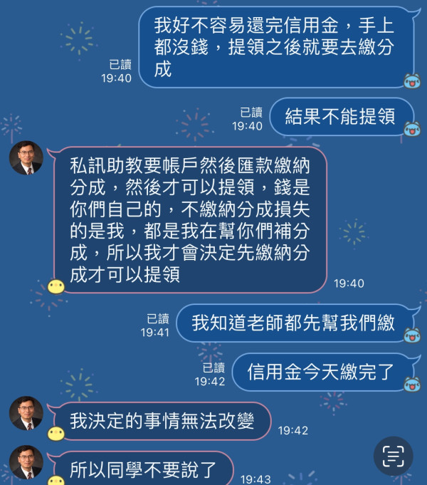 在四月加入一個line群組一飛沖天,裡面有一個老師max跟兩名助教xx穎與xx強原本是股票群,週一至週五每天會推一檔飆股,讓你買進,當然也是有賺有賠,後面接近520就說股市行情不看好有新的投資計劃,就是520複利計劃邀請他的好友Piper Sandler機構楊宗興先生加入,需現金去找u商兌換USDT去儲值,儲值完週一至週五每日中午12:00與下午18:00左右進行操作黃金交易sell&buy兩個方向,原先說好提領後繳納分成,後面等到我要提領就說因為有學員提領完不繳納退群,所以就改先繳納提領!隨意更改規定!還要讓你一直去借錢來繳,這不是讓提領就可以完事的嗎?也一直跟他們溝通先讓提領,待錢提領領出來馬上去繳分成,也無法溝通堅決要先繳納再讓提領!一個正規的操作方,想帶我們賺錢也想賺分成金重點也是想賺分成,還一直叫人去貸款來投資跟借信用金來操作!等還完信用金卻不能提領,才驚覺被騙了,故停止所有錢再轉入!要人把所有資金投入,後面讓人繳不出分成就警告要凍結帳戶,也無預警的將連結收回!也將投資人退踢出群組!讓人無法提領出金!