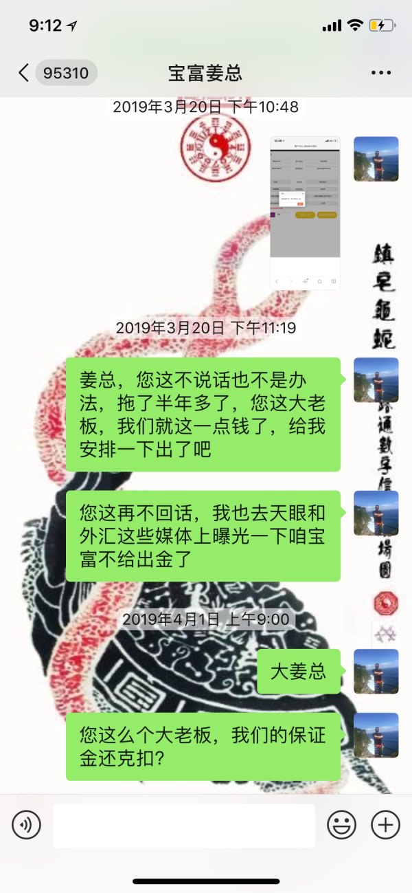 不做宝富一年多了,还有六千多美金不给出金,先后换对接经理,各种理由搪塞,几个经理最后离职,最后找到老板,连电话不接,微信不敢回。
