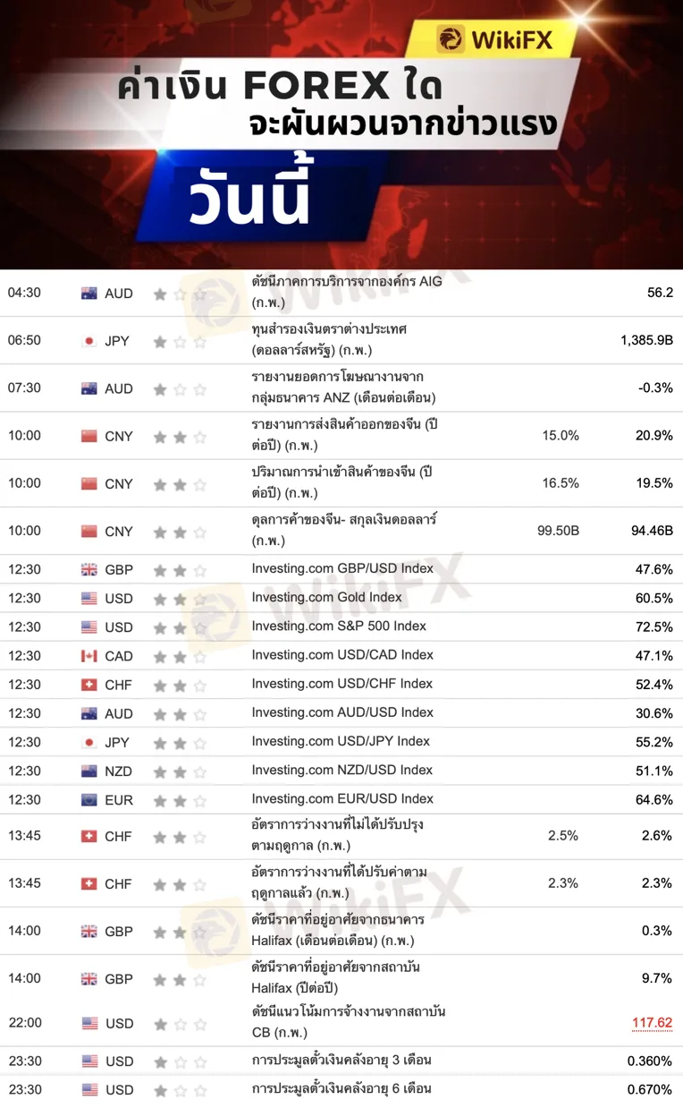 ตารางข่าว Forex ประจำวัน (7 มีนาคม 2565)