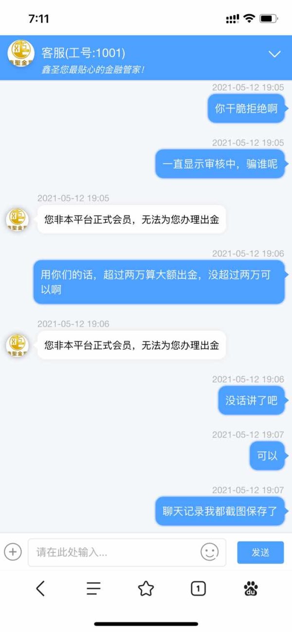 开始可以出金,后来说非会员不可以大额出金,我问大额的标准是多少,告诉我两万,我就出金两万,一直审核中不给通过,后来直接拒绝了。