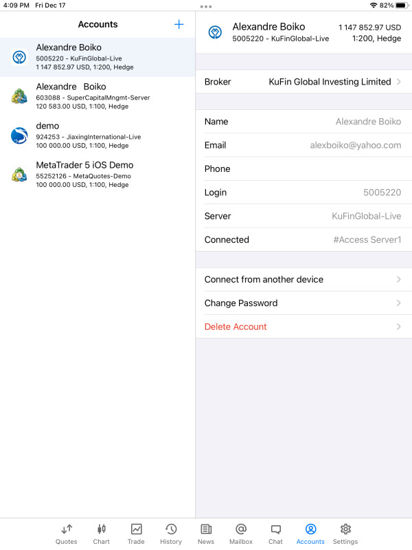 I have deposited $450000 into my account with KuFin starting from November 25th 2021 till December 11th 2021. I have got bonus $150000 total and earned profit $547000. I was denied to make any withdrawals on December 17 2021. Miss Han broker +44 7858 972298 with KuFin informed me that I can’t make any withdrawals because security department detected ubnormal situation in my account. She informed me that I need to deposit whole balance of $1144852.97 first for verification.