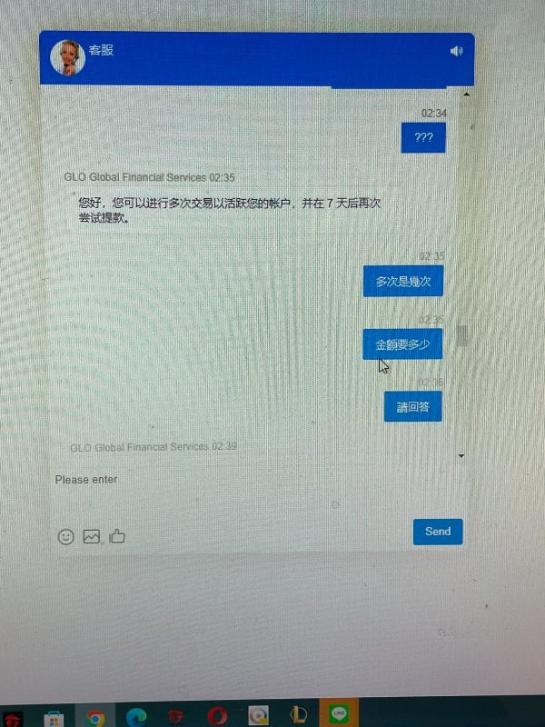 求救!! 經引誘進入GLO FINCE 獲利後卻無法出金!!