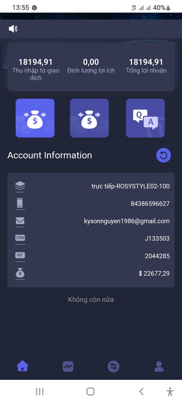 nhà đầu tư không nhận được tiền rút về tài khoản nhắn tin chăm sóc khách hàng thì được trả lời vòng vo không như cam kết ban đầu