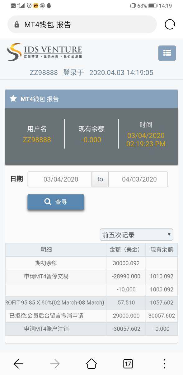 IDS网页可以打开,也可以入金,但多次尝试出金都无法到账