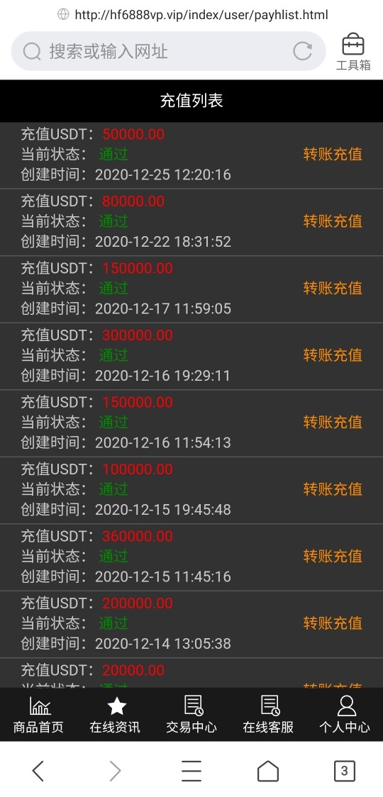 汇丰手机金融高额充值后网页链接失效
