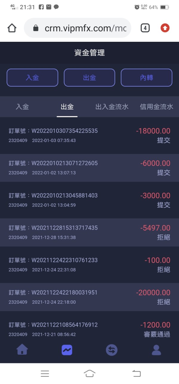想要出金可是客服中心都沒回應,只有說要過年後才能出金,如果要出金不然就要補繳稅金,可是我朋友有匯錢去給對方,還是等不到對方的承諾,還是無法出金。以下都是跟同一個投顧投資的標的,都等不到回應,無法出金。