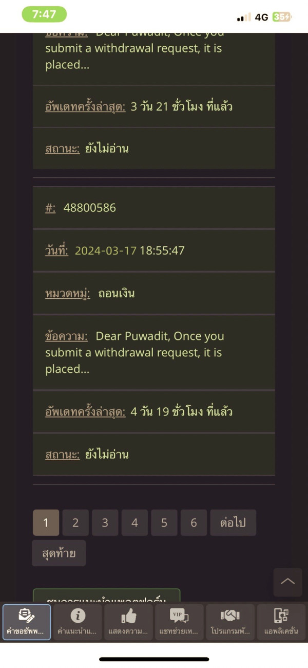 ถอนเงินจำนวน 1,000$ ตั้งแต่วันที่ 18 มีนาคม ทุกวันนี้ยังไม่ได้รับเงินที่ถอน ระวังกันด้วย