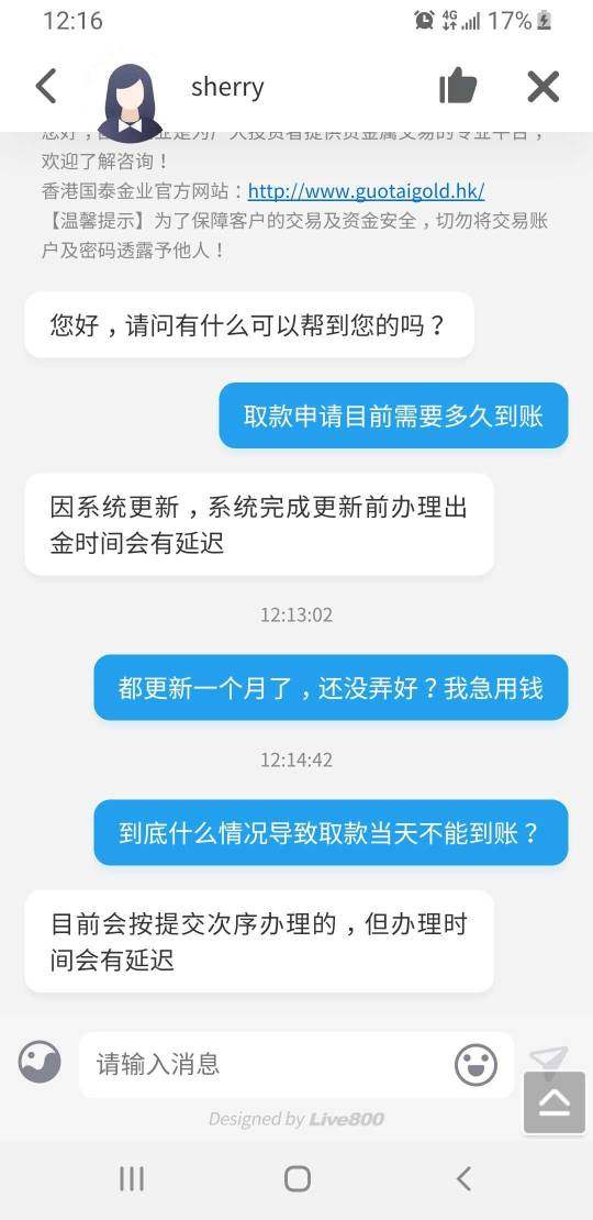 香港国泰金业无法出金