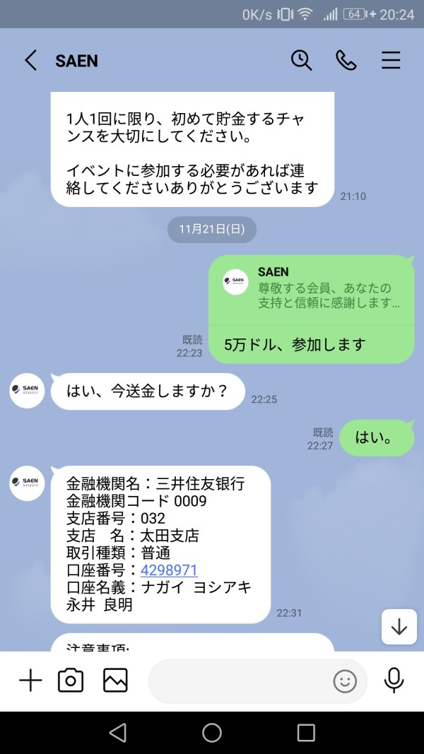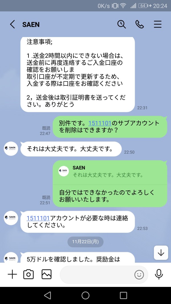 出金手続きまではできるが無反応。LINEの返事もない