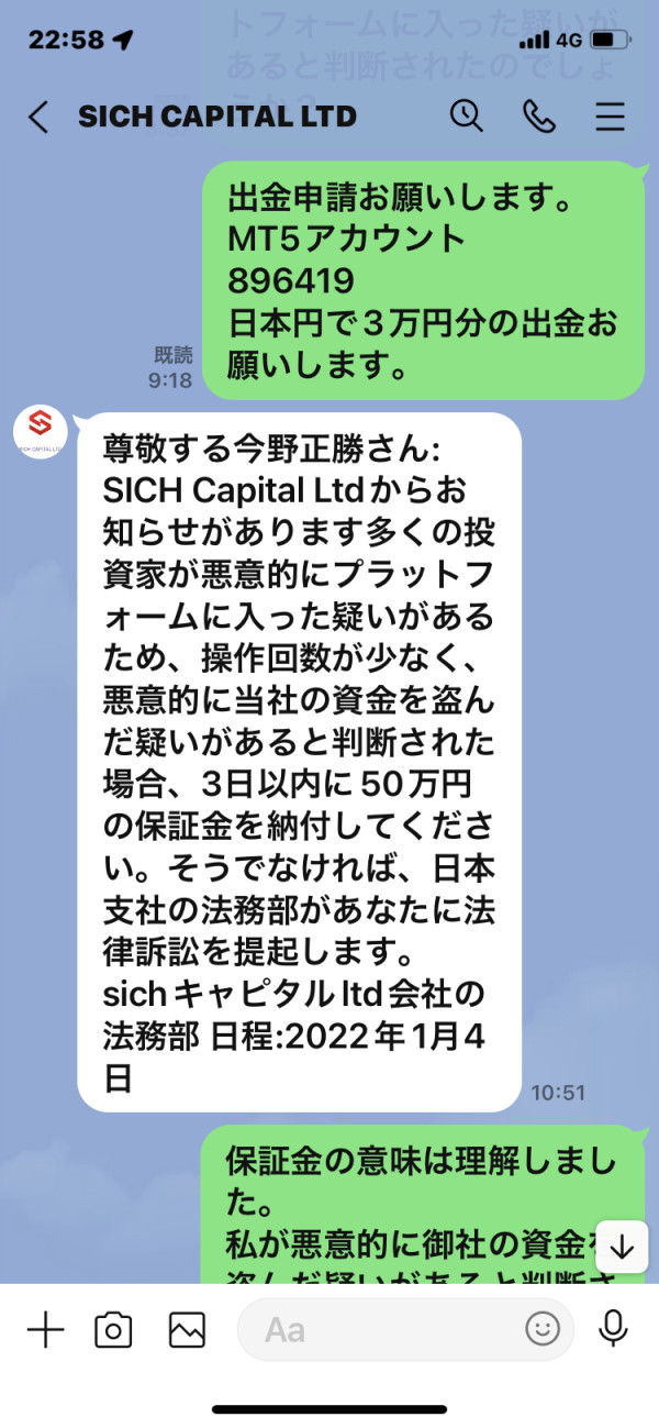 日本円10万円で運用スタートして10日後に試しに出金手続きしたらチャンネル確認料と保証金で50万円支払い命令 2回に分けて入金してカスタマーサービスに別途料金の支払い請求は無いか確認し無いと回答が出て2回目の入金をして改めて出金手続きしたらマネーロンダリングの疑いと文章を送られて176万円支払い命令そんなに出金させたくないのか!口座資金15,000ドルと保証金50万円が損害被害 調停申請しても取り戻したい