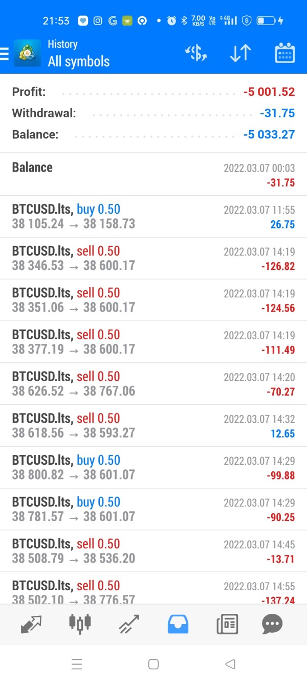 Scam MC losing money. No cut loss. All loss acknowledged but profit not. Manipulation transaction. Almost transaction loss in one day at 7 Mar 22