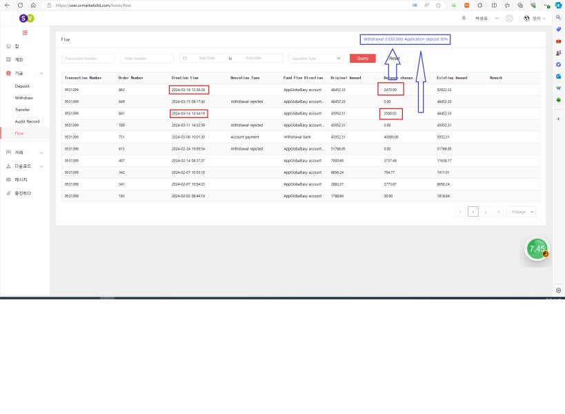 I applied for a $5,000 withdrawal on March 11th, but I made a deposit because I had to deposit 50% of the withdrawal amount as a deposit to make the withdrawal.However, the withdrawal was rejected due to an error in the withdrawal account number, and on March 18, I applied for a $5,000 withdrawal, but I demanded a 50% deposit of the withdrawal amount again.I deposited the 50% deposit again, but now my company's bank account has been suspended from payment, so I sent a suspension of payment issued by the bank, saying that I can't withdraw.But When I checked my suspended bank account, the payment was not suspended. I think it was a deliberate scam that lied to me and refused to withdraw.I'm already asking for a second help.I want to have a good memory of SVMARKET.Please help me make the withdrawal.
