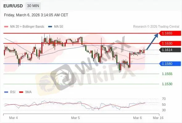 交易策略: 在 1.1580 之上,看涨,目标价位为 1.1630 ,然后为 1.1655。